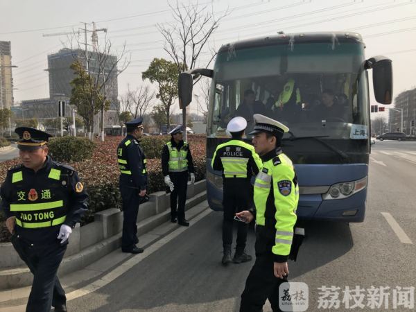 2018年2月11日中午,南京交警六大队、市交通局运政稽查支队四大队联合开展了春运客运车辆违法联合整治行动。
