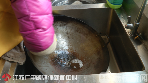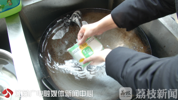 李大姐费了不少力气来擦洗,最终锅上的油污有明显的减少。