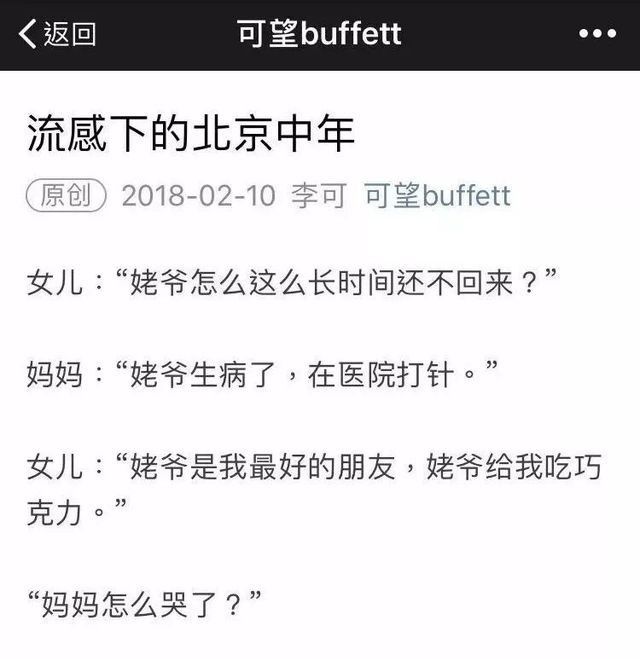 荔枝新闻讯 这两天,微信长文《流感下的北京中年》刷爆朋友圈。短短29天亲人阴阳两隔,一个家庭幸福破碎,身心煎熬, 流感病毒之凶险也再次刷新我们的认知。