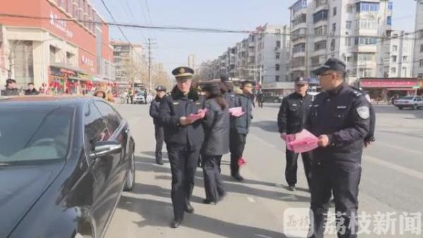 2月12日上午,徐州泉山区14个街道办事处的城管工作人员联合交警部门走上街头,向辖区内的居民发放《致广大车主朋友的一封信》,倡导居民遵守交通规则,不乱停乱放,不占用非机动车道和人行道。