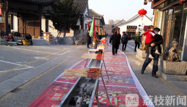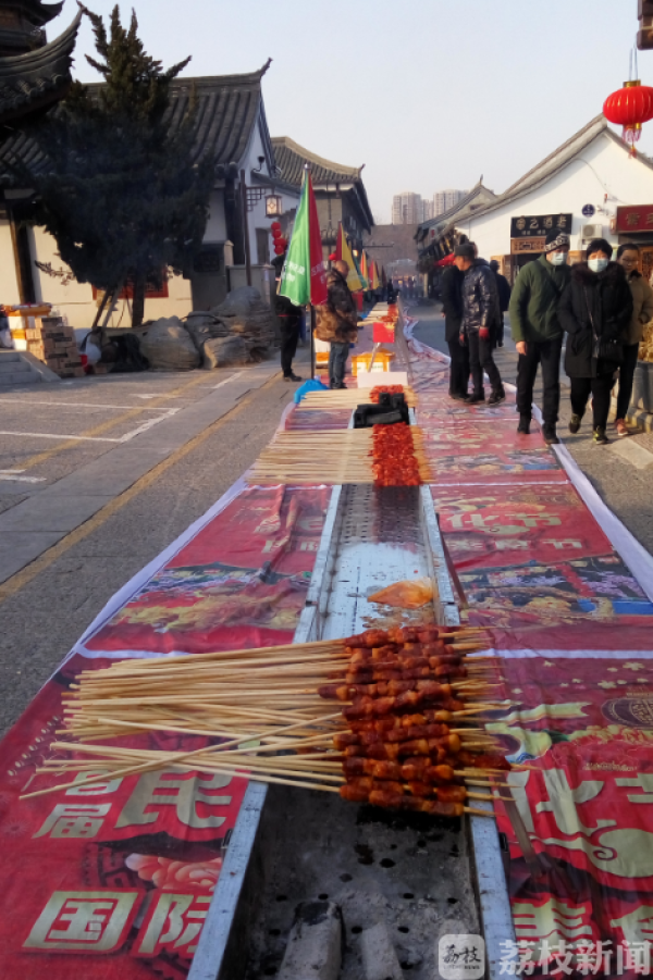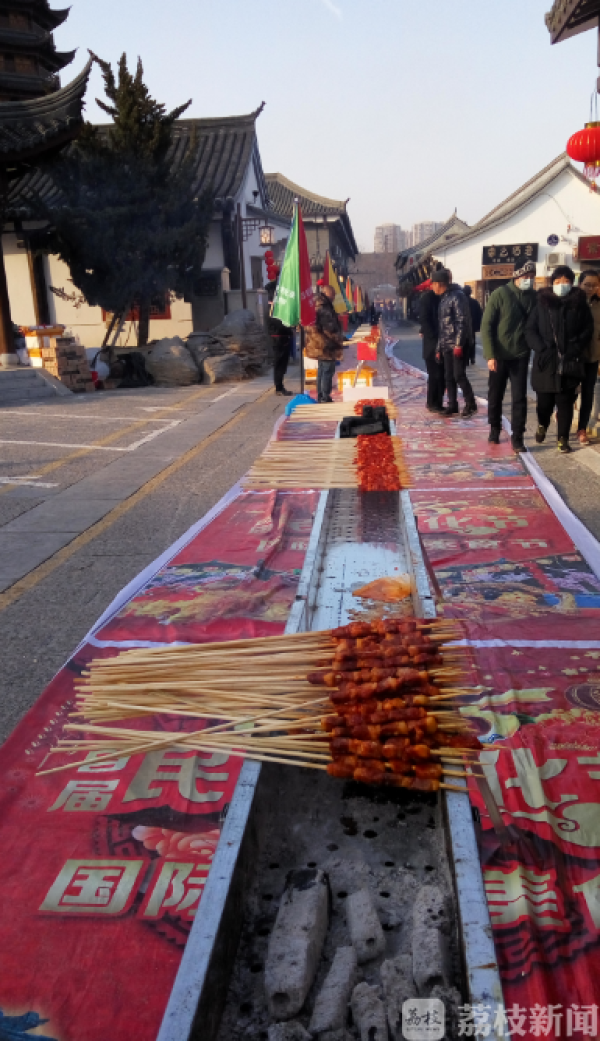 2月13日中午开始,江苏淮安文庙内烤肉炉一路排开,烤肉师们轮番上阵烤肉串,据现场烤肉师傅透露,为了给春节庙会带来喜庆,这一次特地组织了全国最大规模烤肉,所有烤肉炉加起来有108米长,所有火力全开能烤15000串。