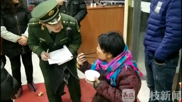 2月13日晚上20点30分左右,江苏盐城边防支队王港边防派出所值班民警接110指令称:在G228华丰农场西大门有个老奶奶可能是迷路了,立即到现场查处。值班民警秦志伟立即带领值班人员赶到现场。华丰农场西大门南侧的观景台饭店内一位60~70岁的老奶正在吃着该饭店老板烧的热菜热饭.现场了解得知,老奶奶叫沈英,是江苏海安人,12日早晨大概7点多钟出门访亲,回家时误从G328走上了G228,一路往北越走离海安越远,老奶奶身上一无手机二无身份证件三无分文,日夜行走了500多公里,13日晚上到达江苏大丰境内,被好心市民发现并收留,而且还为其烧了热饭热菜。秦志伟立即把现场了解的情况反馈到派出所请求协助。
