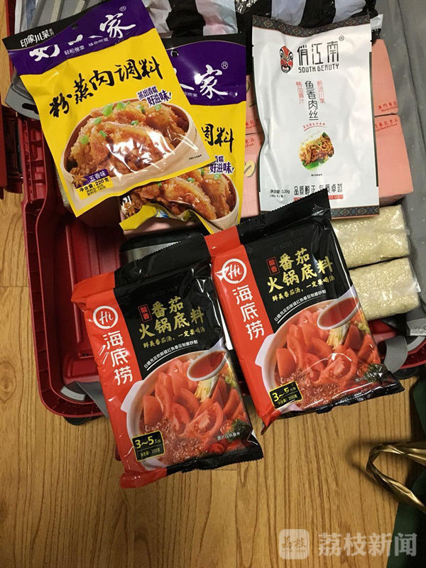“就想要鸭血粉丝汤,因为她从小在南京长大的嘛,生在南京长在南京,所以特别想的也就是这些东西,然后调味料买了很多,各式各样的调味料,像酸菜鱼的呀,鱼香肉丝的呀,包括那个一些火锅调料。”