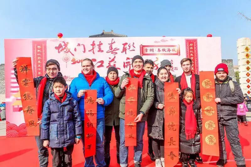 2月8日,一群外国友人来到淹城,“围观”城门挂春联江苏开门红大型活动。戴上主办方为她们准备的红围脖,拿起福气满满的春联,一起感受中国年味!
