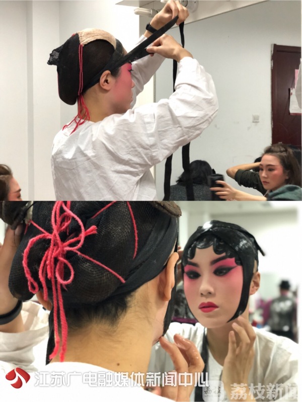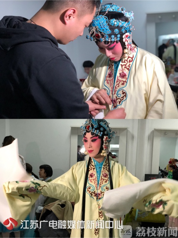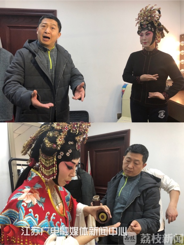 南京市京剧团青年演员王璨和仲鹏,也是一对梨园夫妻。作为90后,他们秀恩爱的方式与众不同。仲鹏今晚没有演出任务,他一边看着王璨化妆,一边吐 槽说:“演出第一,演出前几天,她想干什么干什么,我得伺候好,不能得罪角儿。”王璨笑着说:“你是怕我演砸了,到时候怪你,怕我一下子就降罪 于你吧。”