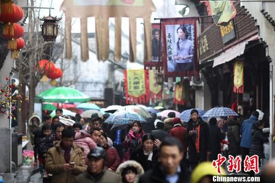 2月18日,大批市民和游客冒着雨涌进南京高淳老街,参观游玩品味这里独特的年味。高淳老街位于南京南部,自宋朝正式建立街市,至今已有900余年的历史。