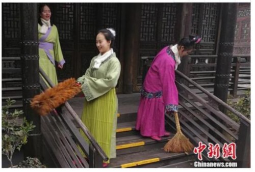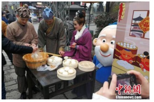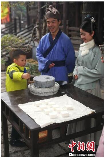 二十三祭灶官,二十四扫房子,二十五磨豆腐,二十六去割肉………耳熟能详的童谣,传统的年俗,如今却鲜有机会亲手体会了。为了让游客在童谣声声中体味古时候中国人过年的习俗,2月18日,在中国尚存最完整的春秋遗址――常州春秋淹城内,穿越而来的“古人”们与游人们一起动手感受年俗。(来源:中国新闻网 编辑/吴颖)