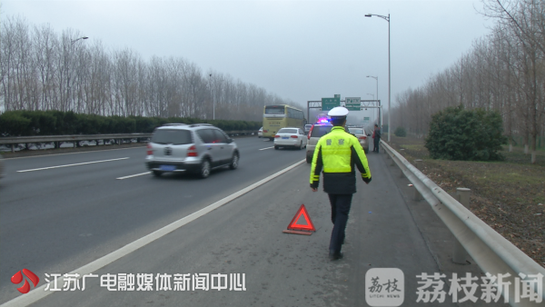 今天是这个春节假期的最后一天,车流量格外大,加上雨天影响,高速路面显得格外拥堵。黄周全等人忙着指挥调度、疏导交通。黄周全告诉记者,大年三十晚上,他赶回老家宿迁,匆匆吃了顿团圆饭,初一就回到了工作岗位。