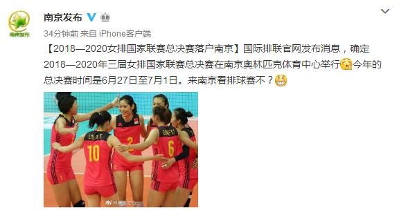2月22日凌晨,国际排联官网发布消息,确定2018-2020年三届女排国家联赛总决赛举办地为中国南京(奥林匹克体育中心)。国际女排联赛就是之前的女排大奖赛,今年,国际排联对此项赛事进行了改革,先是更名,然后增加了参赛队伍数量,分站赛也增多了,2017年总决赛就曾在南京进行。