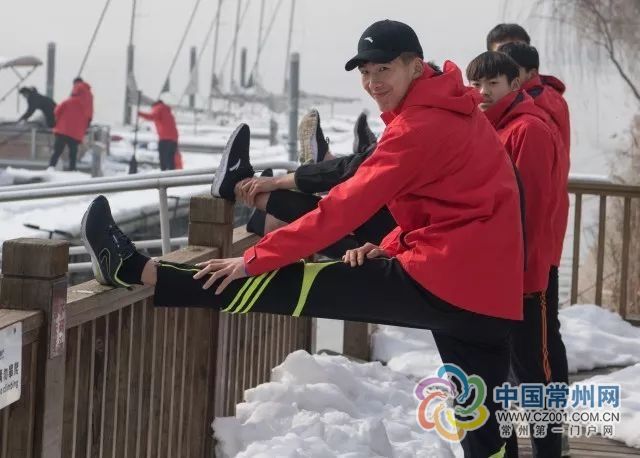 时值早春,西太湖边冷风刺骨,春节前气温降至零下5度。17名常州市赛艇、皮划艇队运动员顶着严寒,为即将进行的水上技术训练热身。