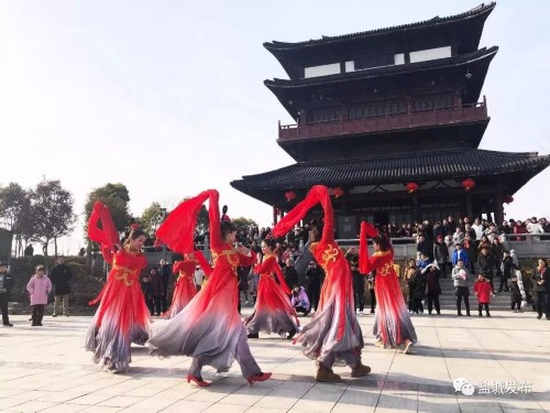 以大小灯笼、中国结、红福、对联为元素的中国年挂饰、群饰,以金狗贺岁为主题的花车彩雕小品等,为西溪景区、黄海森林公园、海盐历史文化景区、中华麋鹿园、九龙口等景区穿上节日的盛装,舞龙舞狮、淮剧杂技、花船花旦等丰富多彩的民俗表演活动,吸引了大量游客和市民的欢乐参与。