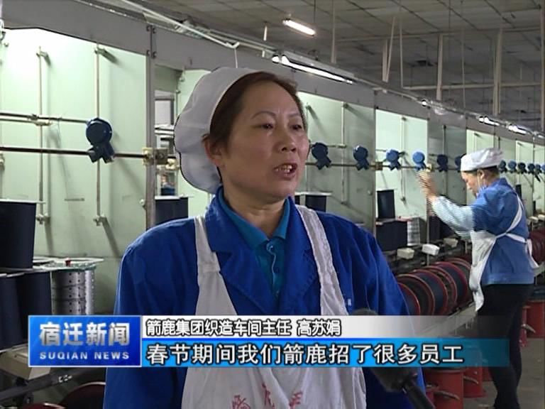 “春节期间我们箭鹿招了很多员工,现在我们订单比较多,我要带着新招来的员工进入到生产当中去,尽快地熟悉操作技术。”江苏箭鹿集团织造车间主任高苏娟说。