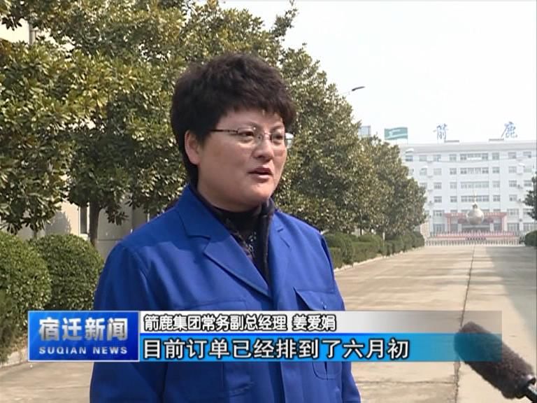 江苏箭鹿集团常务副总经理 姜爱娟表示,年前箭鹿接到大批订单,分别是国家税务总局的面料、军品的毛衫、铁路的春秋装,目前订单已经排到了六月初。