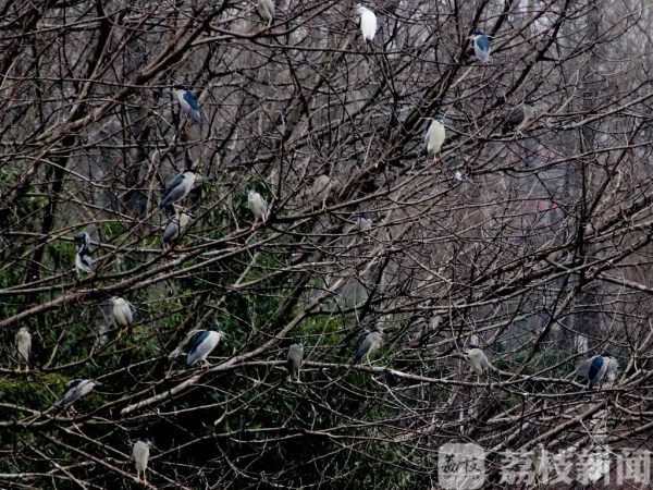 春节期间,在南京河西大剧院绿化树林间,成群结队的鹭鸟在枝头上嬉闹歌唱,喜迎新年到来,场面热闹非凡。上百只鹭鸟,有夜鹭、白鹭和灰鹭,一只只一蹦三跳,有的则在附近的树上搭窝,还有的在空中盘旋,唧唧喳喳欢快地嬉闹。