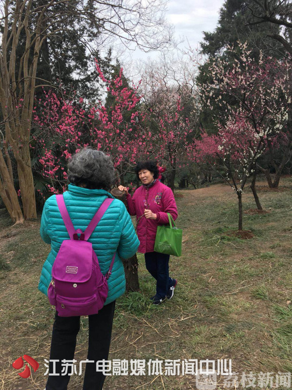 温度回升,加上前期雨水的补充,最适合梅花开放的时期已然到来。南京梅花山花情预报员孙琴介绍:“整个梅花山应该说已经进入了最佳的观赏期,南京红已经进入了盛花期,观赏效果特别好。树都是体量很大的大树,树枝非常漂亮,着花特别密,也很抢眼,在山上很容易就找到它。