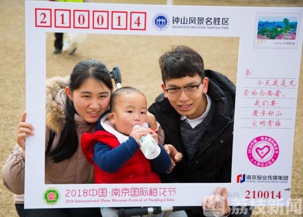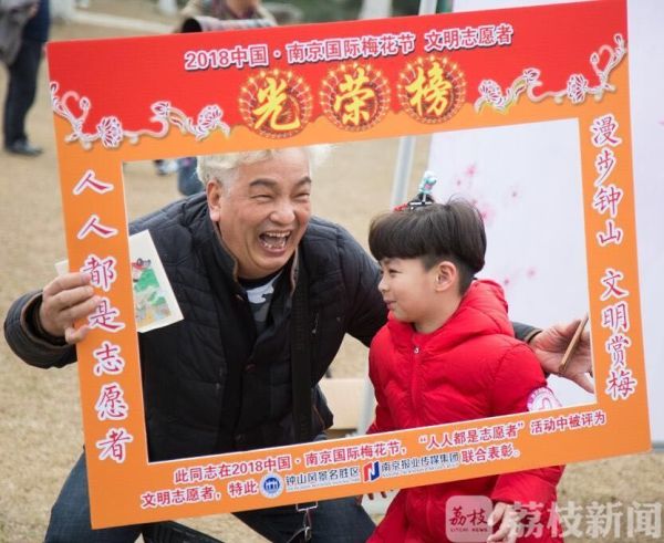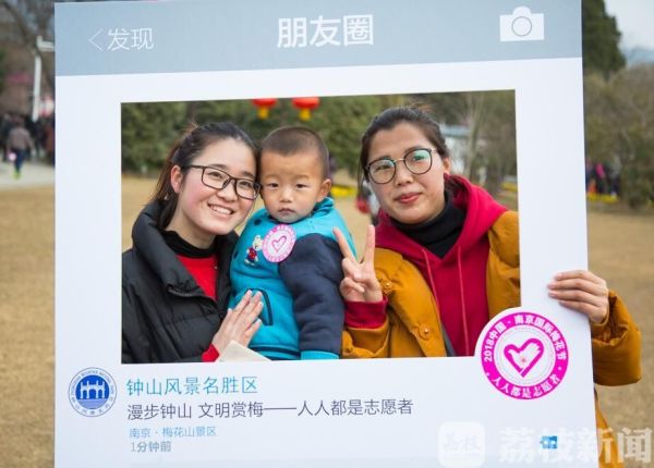 25日上午,在南京明孝陵景区梅花山下,数百位赏梅的游客自发参与了景区开展的2018中国南京国际梅花节“人人都是志愿者”公益活动。在活动的现场,志愿者们热情地向过往的游客发起漫步钟山、文明赏梅的倡议,并在参与活动的游客衣服上粘贴“人人都是志愿者”的活动标识。