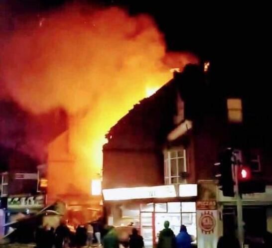 英国莱斯特郡一商店爆炸火光冲天 伤亡暂未公布