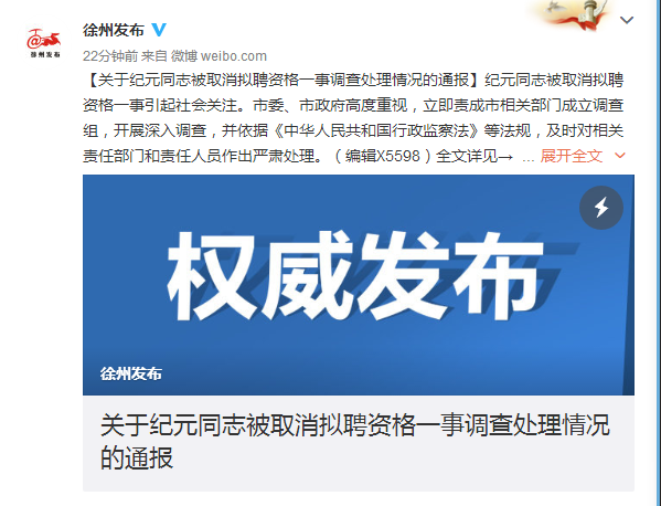 纪元同志被取消拟聘资格一事引起社会关注。市委、市政府高度重视,立即责成市相关部门成立调查组,开展深入调查,并依据《中华人民共和国行政监察法》等法规,及时对相关责任部门和责任人员作出严肃处理。