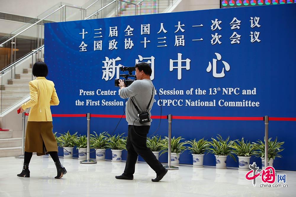 2月27日,十三届全国人大一次会议、全国政协十三届一次会议在北京市复兴路乙11号梅地亚中心设立的新闻中心正式启用。中国网 杨佳摄影