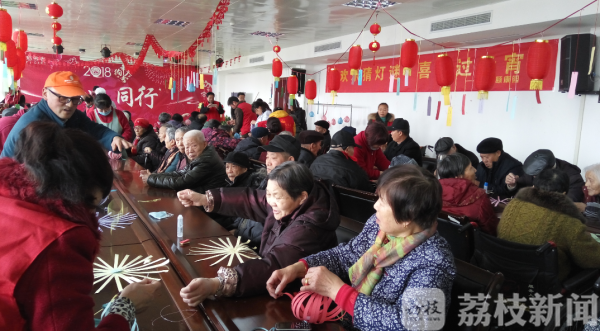 现场志愿者们为老人表演了跑花船,并和老人一起做起了花灯,现场还有手工展示。元宵节当然少不了猜灯谜,现场八十个灯谜只用了半小时不到全被老人猜成功。