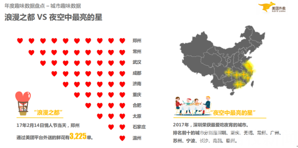 在城市数据方面,成都、西安和长沙人民依旧无辣不欢。而重庆、西安和成都才是真正的火锅之乡。常州人民爱喝粥,真佛系城市,无锡和长春紧随其后。北方人爱吃饺子,以济南、哈尔冰和青岛人民位居榜首。深圳人民吃性不改,荣获2017年最爱吃夜宵的城市,重庆和无锡人民位居第二、第三。