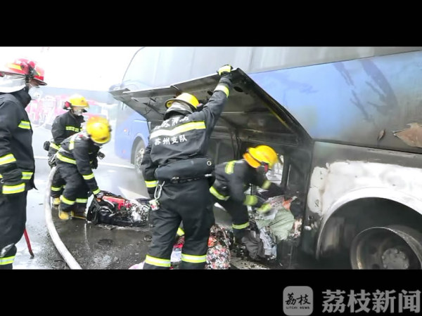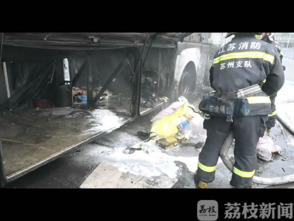 3月1日11时48分,苏州市消防支队相城大队接到110指挥中心报警称,位于苏州市相城区华元路与227省道交界处一辆客车发生火灾,急需救助。接到报警后,大队迅速调派蠡口中队3辆消防车15名消防官兵赶赴现场处置。