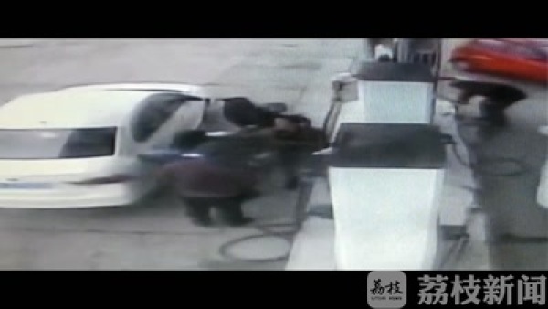 加油站的监控记录下了当时的画面。当天下午两点多,摩托车驾驶员孙某来到高葛线上的一处加油站加油。当时,他旁边还停着一辆准备加油的白色小轿车。就在工作人员加油时,孙某不知何故与加油工起了争执,并给了对方一耳光。