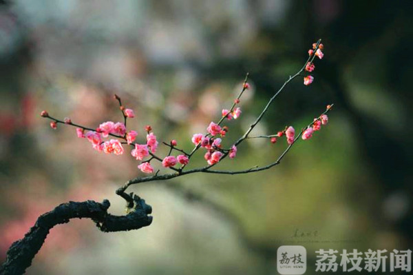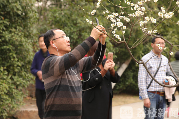 荔枝新闻网友漫步梅花山,只见山上山下到处精品荟萃,如红妆淡抹的 “宫粉梅”,状如游龙的“龙游梅”,萼似翡翠的“绿萼梅”、花如堆雪的“玉蝶梅”、胭脂点珠的“朱砂梅”、以及珍奇品 种“别脚晚水”、“南京红”等,无不吸引着八方来客驻足观看,细细品赏。