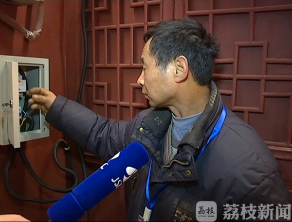 天空刚刚飘着小雨,夫子庙大成殿的电工师傅秦学富就赶紧忙活起来,巡查灯组、检测电压电流,穿梭在各个灯组和电箱之间,由于花灯里面安装的都是LED冷光源灯管,虽然本身自带防水功能,但他们依然要分成三组,每一个小时定期巡查一次,一旦发现问题立刻上报抢修。