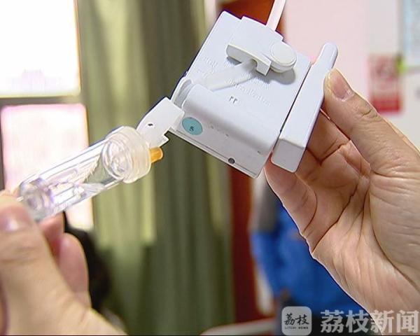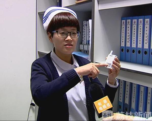在句容市人民医院的住院部,记者见到了该产品的主要发明人、医院护理部副主任宋应群。她介绍:为了有效控制了病区噪声污染,由她领衔的医院品管圈小组引进了无线无声信号系统,研制了手表自动感应输液报警装置,在每名责任护士左腕上佩戴一块手表,接受本组患者的输液结束报警。句容市人民医院护理部副主任宋应群介绍说:“这是一个红外接收装置,当水挂完的时候,皮条里面有空气,卡子自动弹出到这边,自动锁住。锁住的同时信息也会传无线接受装置上面,也就是护士戴的手表上面,那么护士会第一时间过来给病人换水。”