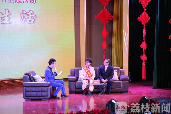 展示活动由“国是家”、“勤为本”、“诚立身”、“善作魂”四个篇章组成,分别聚焦“爱、敬、诚、善”四种家风。“我们是根据我们的革命事业、我们的共同理想相爱的,以后又发现我们有许多相同的爱好,这也是我们生活协调、内容活跃的一个条件……”随着深情的女音,最美书香家庭女主人强银娣给大家带来了《周恩来与邓颖超通信(选集)》节选朗读。