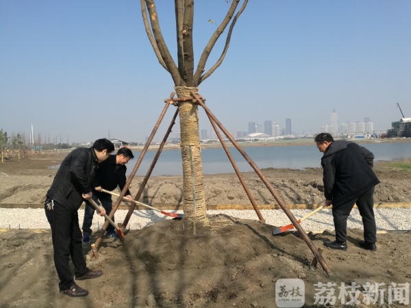 为了让这片新增的“城市绿肺”早日呈现出“花园式”观赏效果,机关干部们来到植树现场争做绿色使者。他们分工协作,有的扶苗、有的培土、有的夯实,到处都是忙碌的身影。经过一上午的忙碌,新栽种的香樟、樱花、银杏等树苗挺立在三月和煦的春风里,绿意盎然,一片生机。