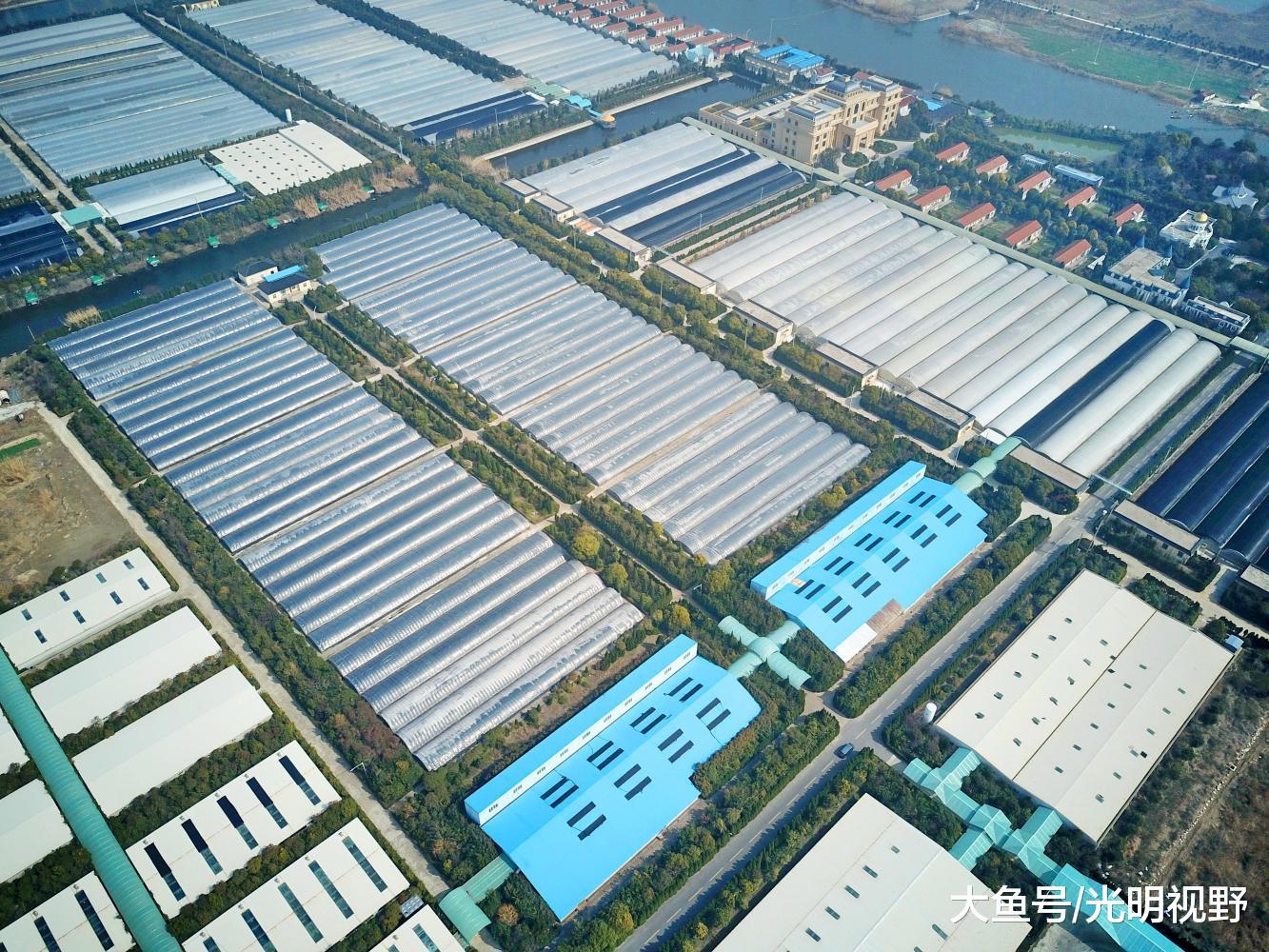 航拍的江苏省南通市旅游风情小镇核心景区中洋河豚庄园局部画面,这里是世界规模最大的河豚鱼养殖基地。