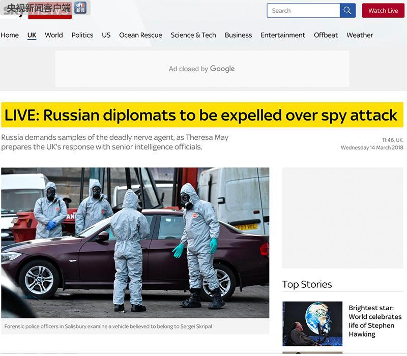 稍早前,俄罗斯前间谍在英国中毒案引发英俄两国外交风波,英国今日呼吁联合国安理会就此召开紧急会议。英国天空电视台报道称,英国政府或将驱逐俄罗斯驻英外交官。