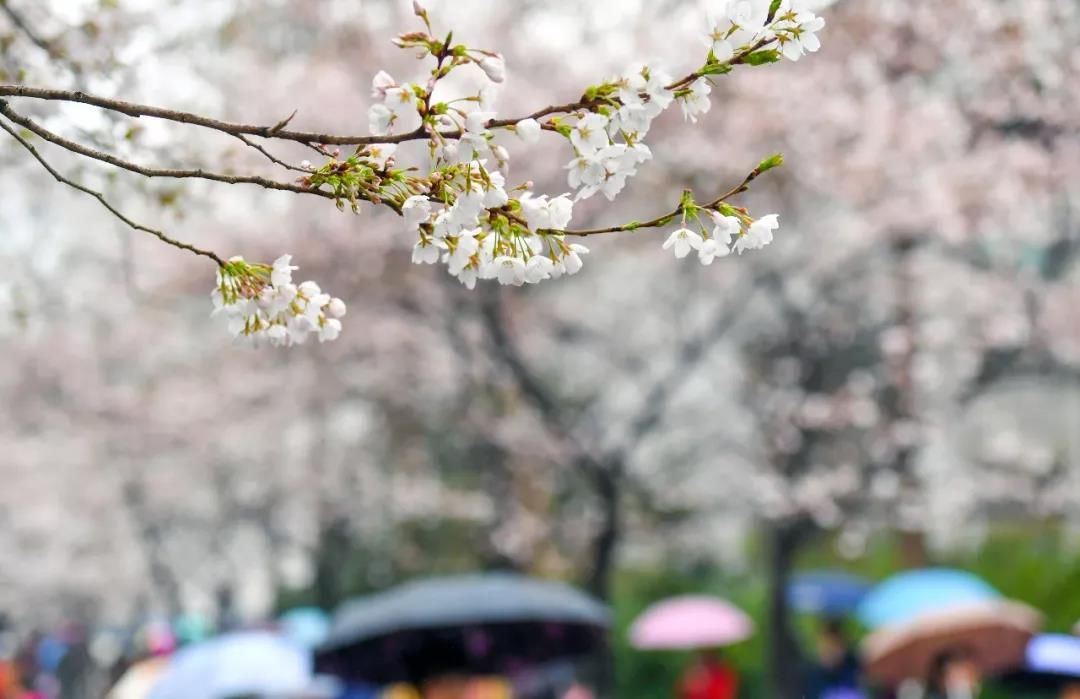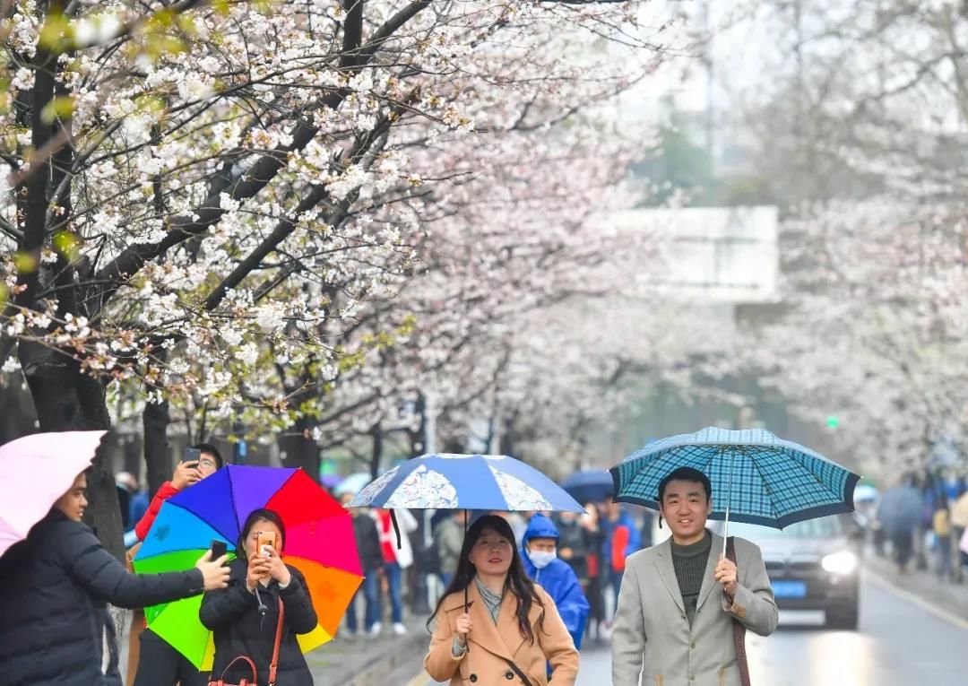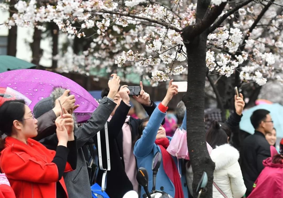 淅淅沥沥的春雨中,樱花更显洁白如雪、娇滴可爱,令过往行人目不暇接,陶醉不已,纷纷驻足拍下这别样春景。