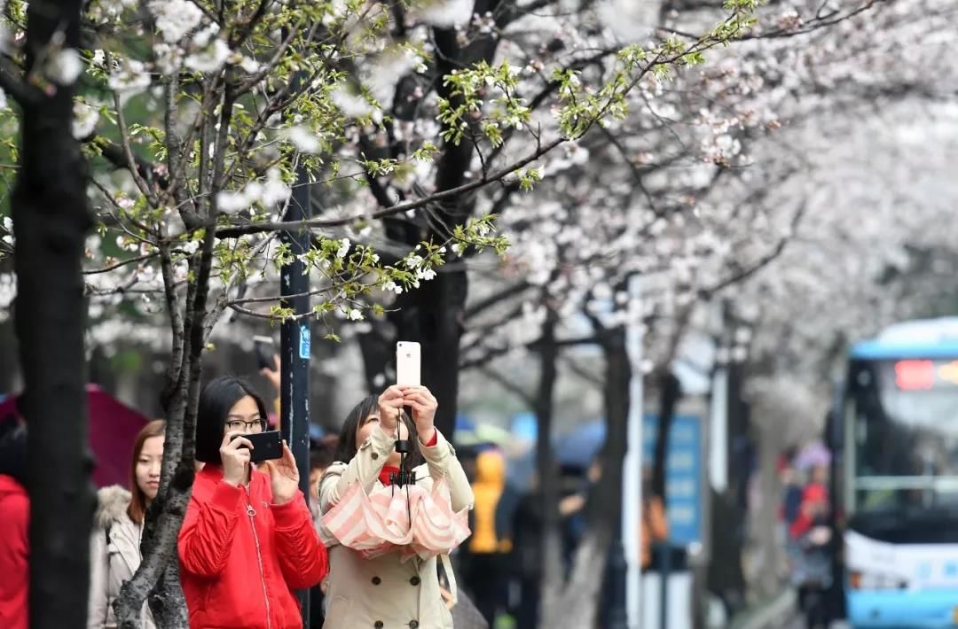 如果用一句话概括南京人春天的状态:不是在看樱花的路上,就是在拍樱花的路上。