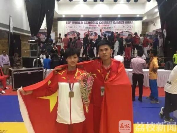 2017年印度阿格拉第一届世界中学生武搏会,育英3名运动员贡献2金1铜;