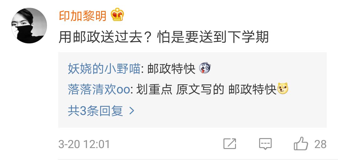 有网友表示,“禁酒令”中的“邮政特快”戳中笑点: