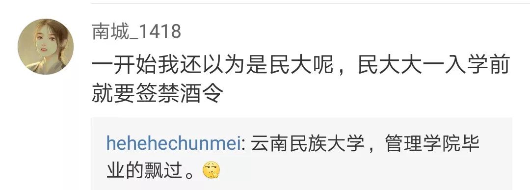 不少网友表示,也有其他学校同样有类似“禁酒令”,比如云南民族大学: