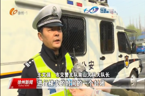 徐州市交警支队泉山大队大队长 王文强:当天的话我们会从早上6点40开始,对我们的所有赛道进行梯次的时间的一个封闭 。