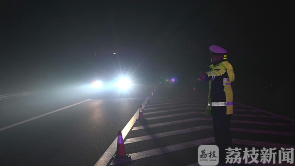 记者赶到盐城开发区收费站出口的主线上时,高速交警、路政和管养中心的工作人员已在主线上摆放了警示锥桶,一名交警站在匝道的分流线上,正在指挥由南向北往连云港方向的车辆下高速。盐城交警支队高速二大队民警纪飞告诉记者,从沈海高速盐城(东)收费站向北,因浓雾和团雾的影响,路面能见度低于百米,甚至有的路段不足五十米,已经不适宜车辆在高速上行驶。凌晨三点半钟左右,关闭沈海高速段的所有通道,并在盐城开发区收费站这里设置分流点,强行分流由南向北往连云港方向的车辆。