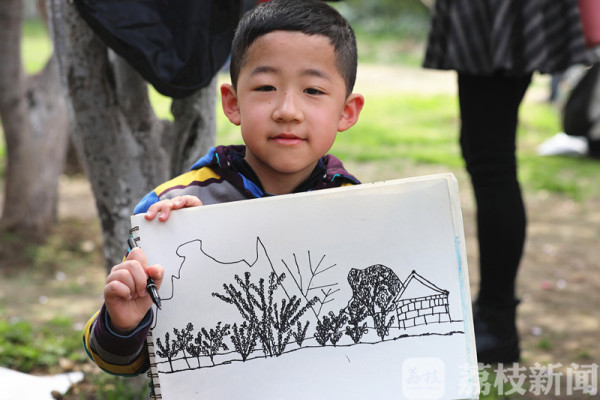 据了解,这些小朋友是南京师范大学第二附小的小学生,共有50多人。今天他们是在老师的带领和家长们的陪同下,来莫愁湖公园练习写生的。
