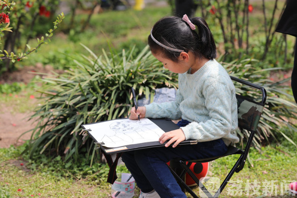 “看看,这孩子画得真好!”“这海棠画得可真象!”见到孩子们一个个画得认真,而且有模有样,过往的游人纷纷走过来欣赏他们的作品,并不时发出由衷的赞扬声。