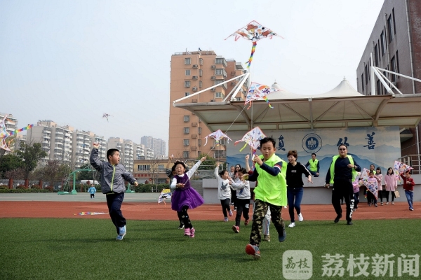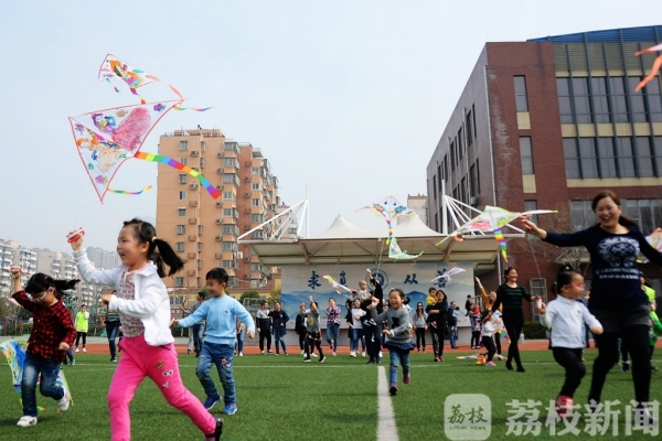 随着一个个亲手制作、形态各异的风筝飞起来了,孩子们看着笑着,蹦着喊着…