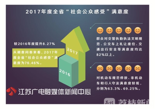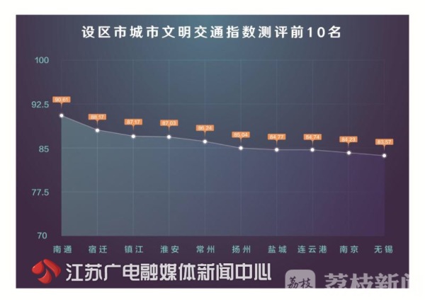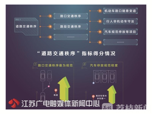 据了解,江苏省交警总队专门聘请了第三方专业测评机构,对道路交通秩序、交通管理设施、城市客运服务、文明交通礼让、道路交通安全以及社会公众感受这六个项目进行了测评。省内13市中,得分最高排名前三的分别是南通、宿迁和镇江,而省会南京排名第九。