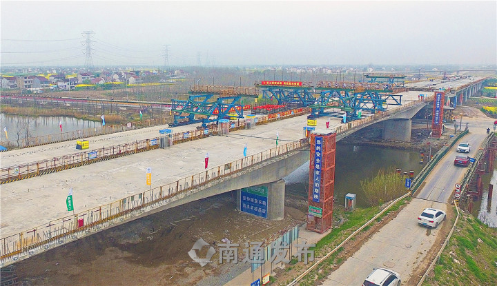 海启高速是创建省级品质示范工程项目。汇吕线特大桥位于启东市境内,上跨规划的三和港三级航道和吕北一级公路,桥梁全长1033.4米,主桥上部结构型式为悬臂浇筑预应力混凝土连续箱梁,下部结构采用实体桥墩,群桩基础,于2016年11月4日开工建设,去年8月25日完成箱梁架设。