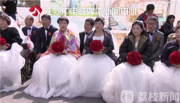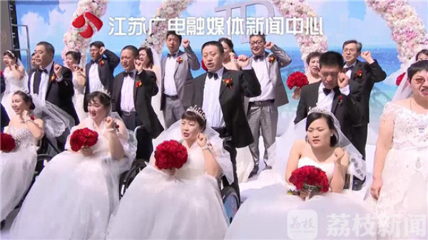 近日,常州一家爱心组织为13对残疾夫妻举行了集体婚礼,现场充满了浓浓的爱意。