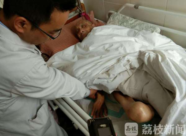 在苏州福星护理院舒缓疗护病区,89岁高龄的石老伯因患中风后遗症,肌肉萎缩严重,全身骨瘦如柴,手脚都无法拉直,完成丧失了生活自理能力。病区主任胡魏介绍:“现在我们主要给他人文关怀,陪他聊聊天,看看报纸。另外,他喜欢听听收音机,有时候也看看电视,因为他完全起不来的。”