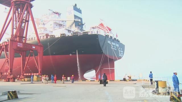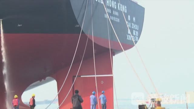 江苏扬子鑫福造船有限公司副总经理 陈金炉:“第一个就是它的燃油消耗比传统的40万吨矿砂船要节省20%的油耗 ,第二个就是它的效能指数大概要比原来的船节省30%左右 ,另外一个,就是在建造的过程当中 我们采取了先进的工艺 ,我们工厂组织了50项攻关课题 ,确保了这个船的顺利建造。”