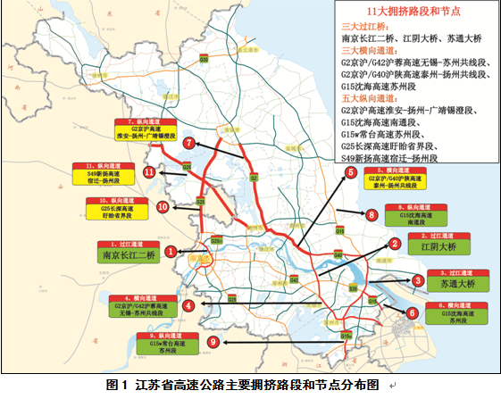 S49新扬高速宿迁-扬州段、G25长深高速淮安-南京段、G2京沪高速淮安-扬州段、G2京沪/G40沪陕高速扬州-广陵段(见图1)。节日期间,以上路段流量大,部分服务区较为拥堵,请大家做好绕行准备!